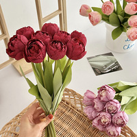 Burnt Edge Artificial Tulips Bouquet of 9 Stems Real Touch Silk Flowers for Wedding Home Hotel Party Decoration