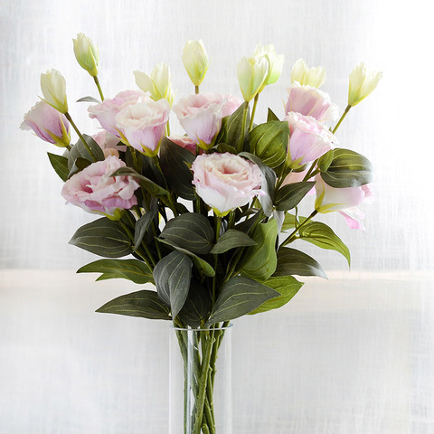 ดอกไม้ประดิษฐ์ดอกลิเซียธัส3หัวแบบสมจริงศิลปะดอกไม้งานแต่งงานตกแต่งบ้านโต๊ะดอกไม้